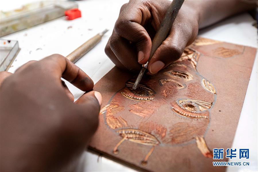 12月20日,在肯尼亞內(nèi)羅畢庫奧納藝術中心,一名藝術家在工作室內(nèi)創(chuàng)作作品。 新華社記者 王騰 攝