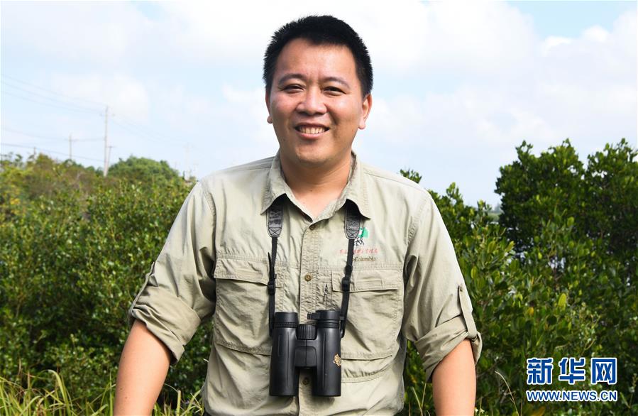 海南東寨港國家級(jí)自然保護(hù)區(qū)林業(yè)工程師馮爾輝(12月18日攝)。 馮爾輝2009年大學(xué)畢業(yè)后來到保護(hù)區(qū)工作,小時(shí)候他家就住在紅樹林邊上,他從小和紅樹林打交道,喜歡動(dòng)植物和鳥類。外貿(mào)專業(yè)畢業(yè)的他邊工作邊學(xué)習(xí),目前主要從事鳥類監(jiān)測、紅樹林保育、自然教育等工作?!凹t樹林看著我長大”,馮爾輝說,濕地保護(hù)的工作非常有意義。 新華社記者楊冠宇攝