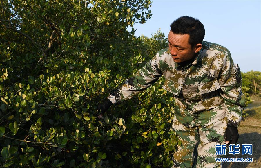 海南新盈紅樹林國家濕地公園巡護(hù)員兼監(jiān)測員羅理想在濕地公園內(nèi)的灘涂上做監(jiān)測(11月27日攝)。 羅理想2006年起開始參與紅樹林濕地的保護(hù)工作,近年來他參加了很多關(guān)于濕地的培訓(xùn)。2016年,羅理想在工作中監(jiān)測到極危鳥種勺嘴鷸,當(dāng)時(shí)有許多媒體做了報(bào)道,后來他又配合專家在濕地公園里發(fā)現(xiàn)了拉氏紅樹,“那個(gè)時(shí)候感覺自己的工作很有價(jià)值”,羅理想說。 新華社發(fā)