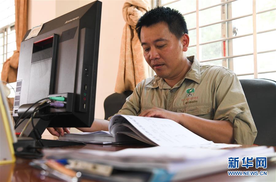 海南東寨港國家級(jí)自然保護(hù)區(qū)林業(yè)工程師馮爾輝在保護(hù)區(qū)內(nèi)的辦公室查看相關(guān)資料(12月18日攝)。 馮爾輝2009年大學(xué)畢業(yè)后來到保護(hù)區(qū)工作,小時(shí)候他家就住在紅樹林邊上,他從小和紅樹林打交道,喜歡動(dòng)植物和鳥類。外貿(mào)專業(yè)畢業(yè)的他邊工作邊學(xué)習(xí),目前主要從事鳥類監(jiān)測、紅樹林保育、自然教育等工作?!凹t樹林看著我長大”,馮爾輝說,濕地保護(hù)的工作非常有意義。 新華社記者楊冠宇攝