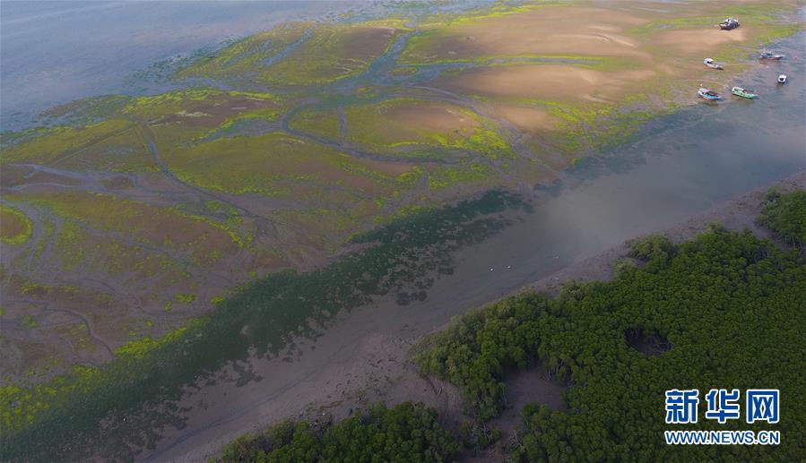 海南儋州新英灣紅樹林市級(jí)自然保護(hù)區(qū)的紅樹林和灘涂(12月10日無人機(jī)拍攝)。新華社記者楊冠宇攝