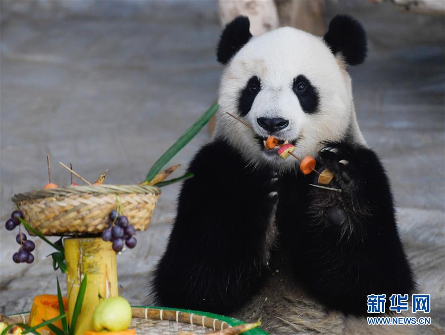 海口:大熊貓“擼串”迎新年