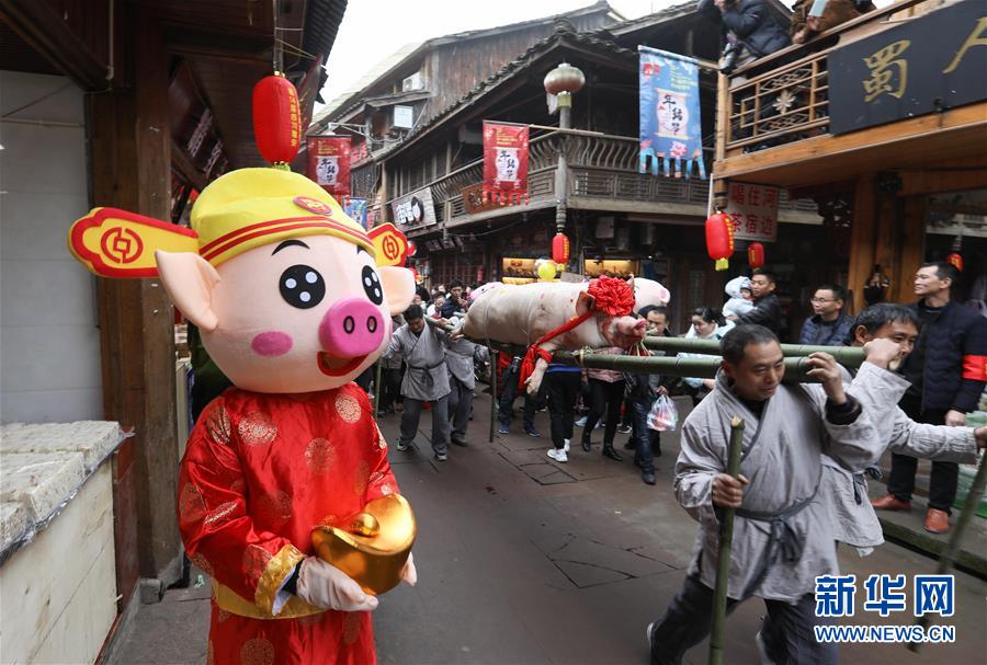 當(dāng)日,一年一度的四川省雅安市“年豬節(jié)”在雅安市雨城區(qū)上里古鎮(zhèn)開幕,抬年豬巡游、民俗文藝演出、年豬宴等活動(dòng)吸引了全國各地游客前來觀賞體驗(yàn)。雅安“年豬節(jié)”由傳統(tǒng)的農(nóng)家過新年、殺年豬、看大戲等喜慶活動(dòng)逐漸演變而來,自2005年開始舉辦,至今已舉辦了十四屆。