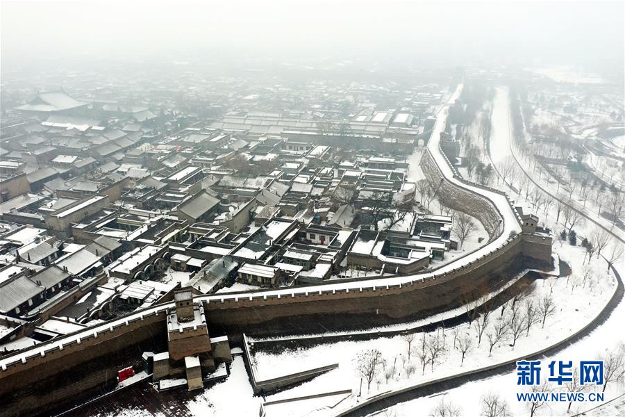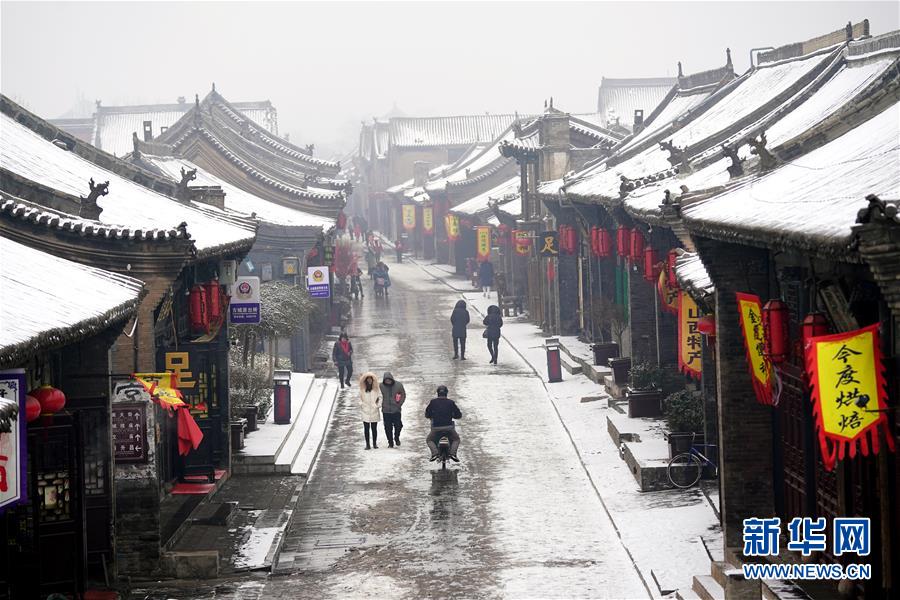 當(dāng)日,山西省平遙縣迎來降雪,雪中的平遙古城銀裝素裹,美景如畫。平遙古城是目前中國保存最完整的古代縣級城池之一,1997年被列入世界文化遺產(chǎn)名錄。
