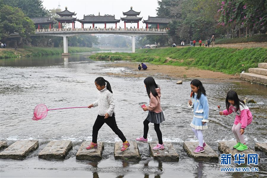 2019年12月22日,小朋友們在深圳龍崗河上玩耍。 新華社記者 梁旭 攝