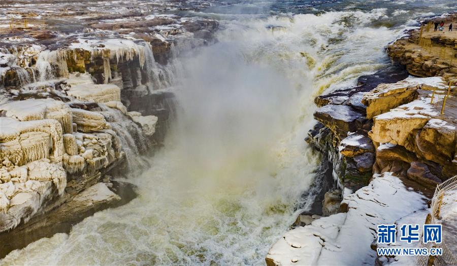 1月12日拍攝的黃河壺口瀑布主瀑(無(wú)人機(jī)照片)。新華社記者陶明攝