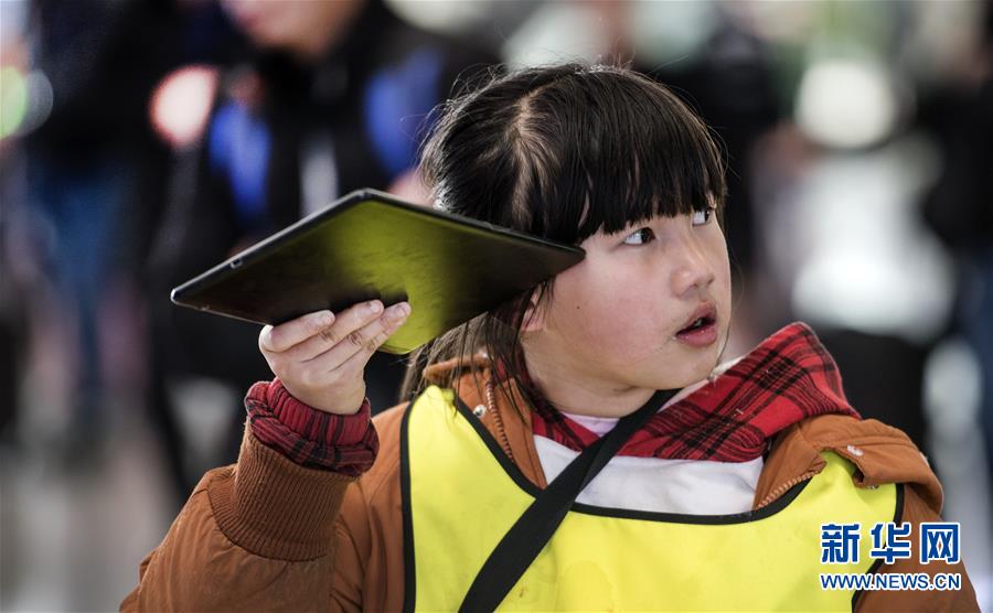1月14日,一位小朋友在西安北站候車大廳與家人通話。路再遠(yuǎn)、再艱辛,也擋不住回家的腳步。在西安北站的每一個角落,處處充滿溫情和歸鄉(xiāng)的盼望。連日來,西安北站日均發(fā)送旅客12.1萬人次,一列列春運(yùn)的列車,載著中國人的鄉(xiāng)愁,駛向遠(yuǎn)方。新華社記者陶明攝