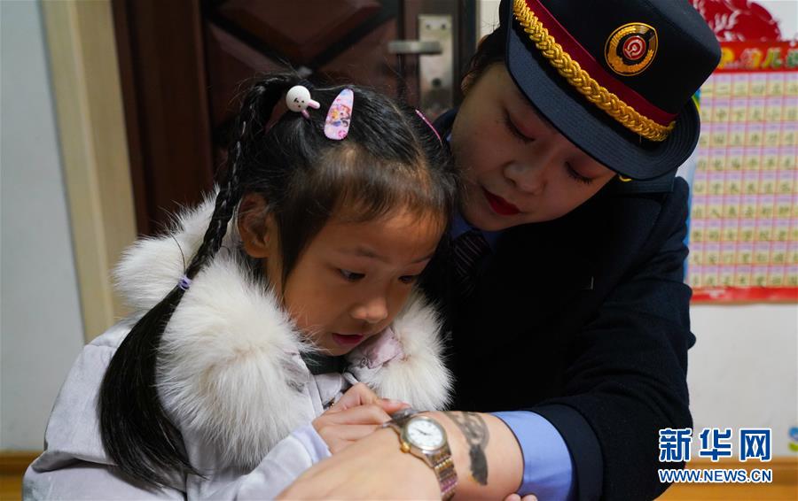 2020年1月3日晚,卞菁值乘從井岡山開往北京西的D734次列車,途經(jīng)南昌西站。思念媽媽的女兒朱梓芮在父親的陪同下,來到南昌西站站臺(tái)與卞菁團(tuán)圓,一家三口在站臺(tái)度過了8分鐘的團(tuán)聚時(shí)光。 在昏暗的站臺(tái),朱梓芮用水筆將媽媽手上略有些模糊的“手表”重新描繪清晰。隨著鈴聲響起,車門將一家人隔開,列車遠(yuǎn)去,一家人眼眶變得濕潤(rùn)起來……