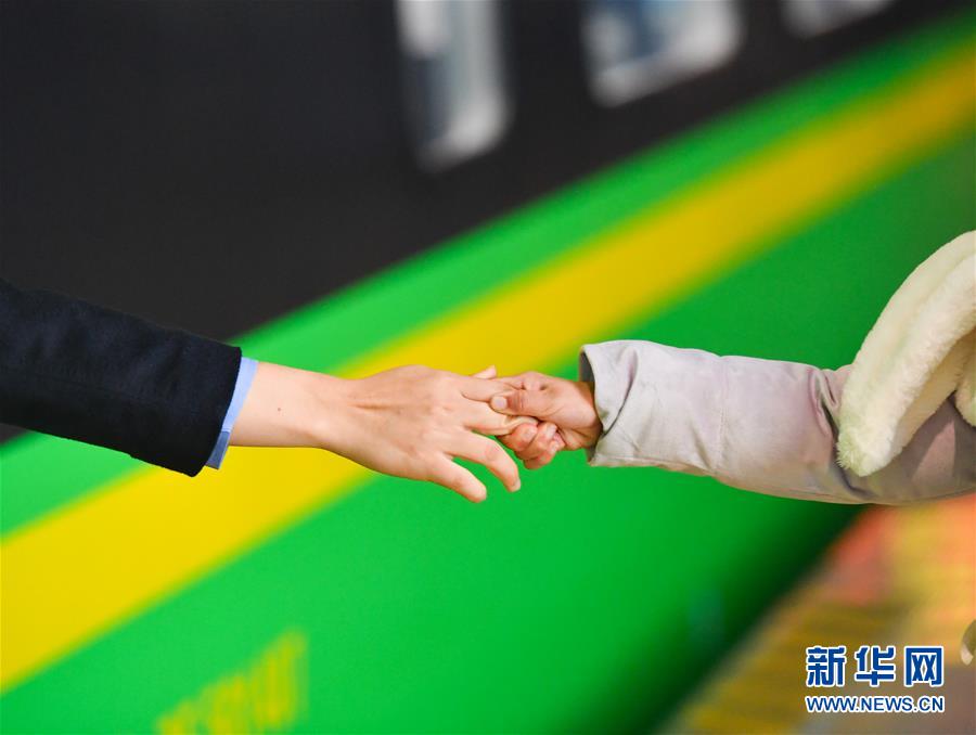 1月3日,朱梓芮和母親在南昌西站站臺分別。新華社記者 胡晨歡 攝