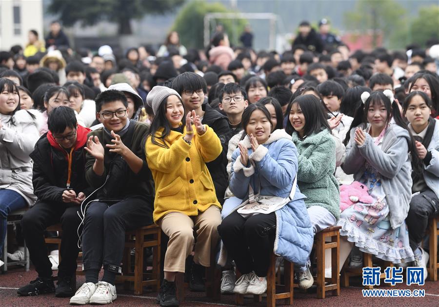 1月15日,師生們在觀看慰問演出。 當(dāng)日,“我們的中國夢”——文化進萬家中央歌劇院文藝小分隊來到重慶市石柱土家族自治縣第一職業(yè)學(xué)校進行慰問演出,為學(xué)校的三千多名師生帶來了一場精彩的音樂大餐。 新華社記者 王全超 攝