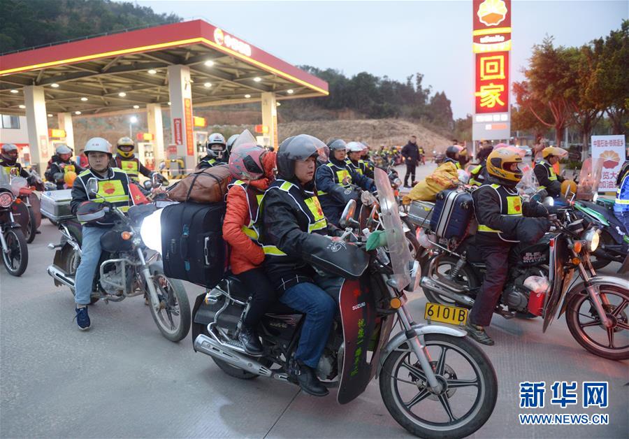 1月15日,在福建泉州,騎摩托車返鄉(xiāng)的外來務工人員啟程返鄉(xiāng)。 新華社記者 賀燦鈴 攝