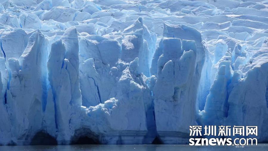 莫雷諾冰川的一段呈冰堤狀,冰堤把冰川與正對面的麥哲倫半島連接起來。隨著流水滲透沖刷,冰堤下部最終會形成一個拱門。當拱門上方的冰墻漸漸支撐不住時,便會轟然崩塌。李仁奇攝