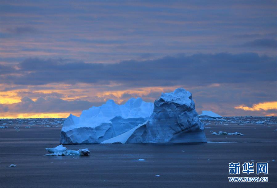 南大洋上的午夜冰山(2019年12月16日攝)。新華社記者劉詩(shī)平攝