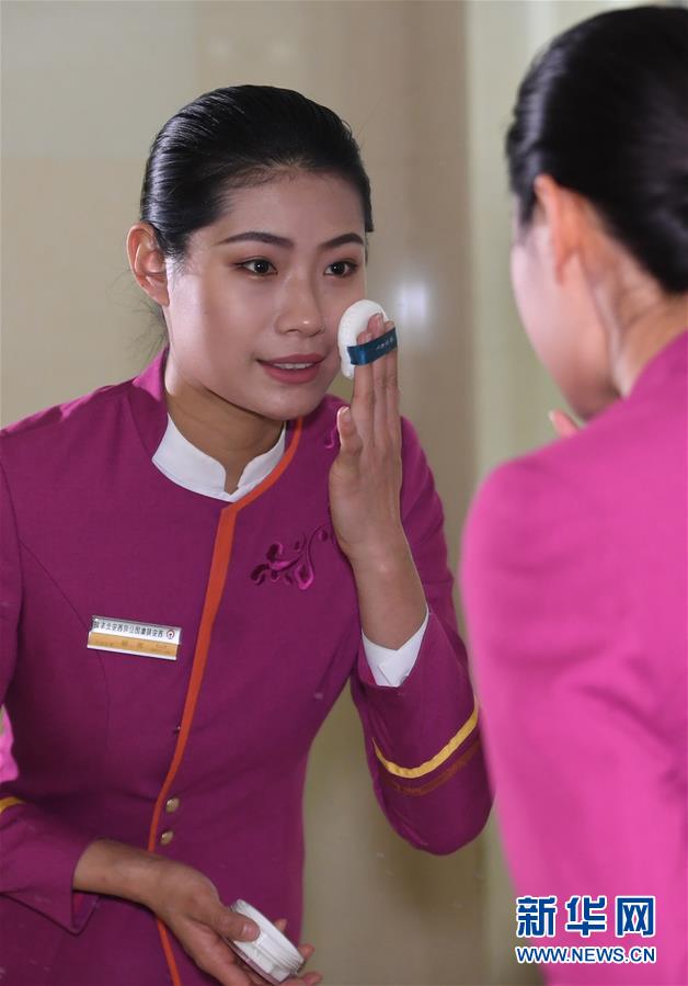 吉如在鏡子前化妝,帶著滿滿的笑意開(kāi)啟一天的工作(1月15日攝)。新華社記者陶明攝