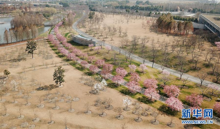 這是2月24日在上海松江辰山植物園內(nèi)拍攝的櫻花小徑(無(wú)人機(jī)照片)。 新華社記者 方喆 攝
