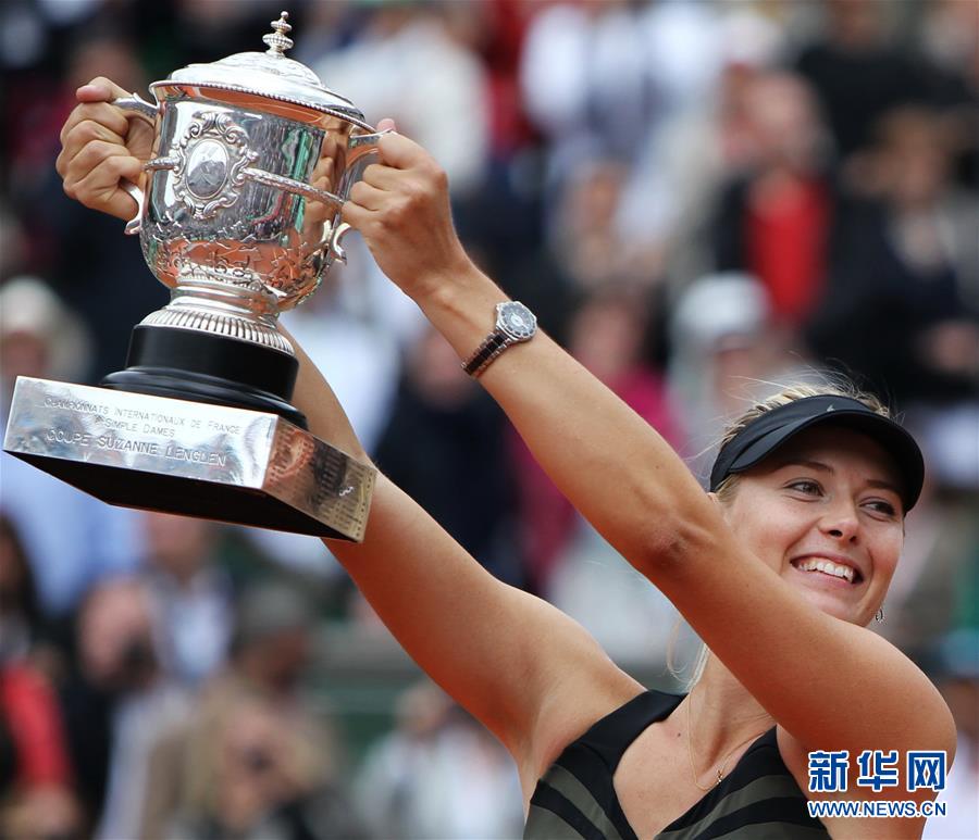 圖為2012年6月9日,莎拉波娃在法國(guó)網(wǎng)球公開(kāi)賽女單決賽中戰(zhàn)勝意大利選手埃拉尼,首次奪得法網(wǎng)冠軍,完成個(gè)人“全滿貫”目標(biāo)。 新華社記者高靜攝
