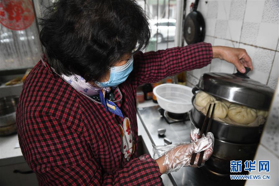2月29日,張?zhí)m英在合肥市奧林花園社區(qū)的家中做包子,準備送給疫情防控人員。
