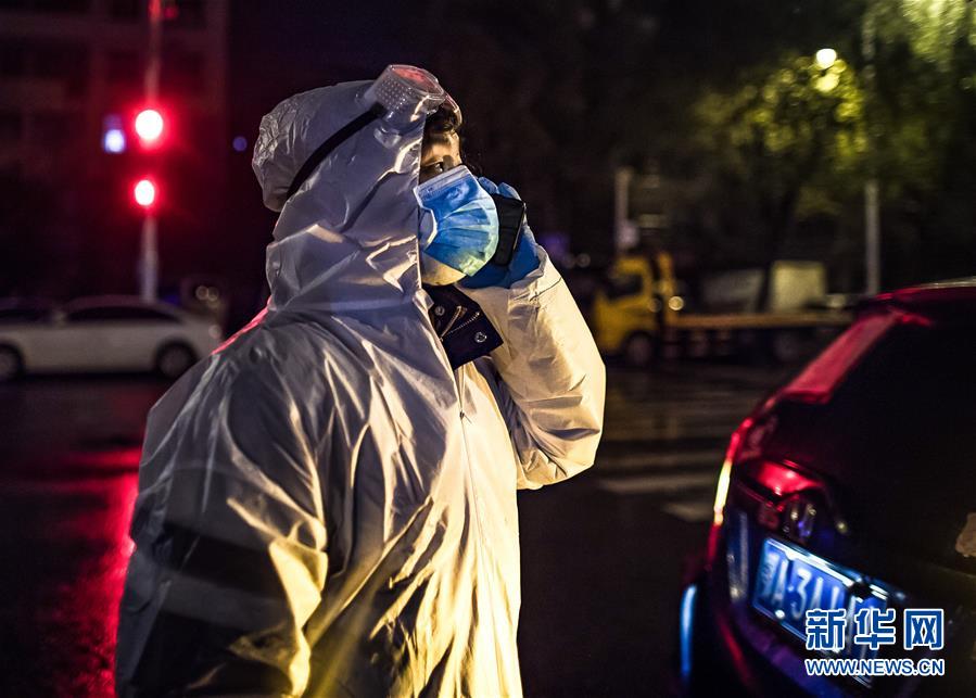 2月29日凌晨,王震到達(dá)約定地點(diǎn)后和產(chǎn)婦劉婷家屬聯(lián)系。新華社記者 肖藝九 攝