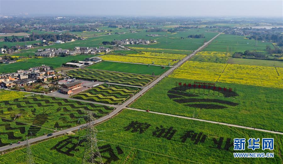 2月25日在四川省崇州市拍攝的油菜花田(無人機(jī)照片)。新華社記者王曦?cái)z