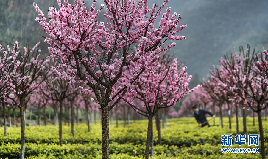 3月2日拍攝的平利縣長(zhǎng)安鎮(zhèn)洪福茶山盛開的春梅。新華社記者陶明攝