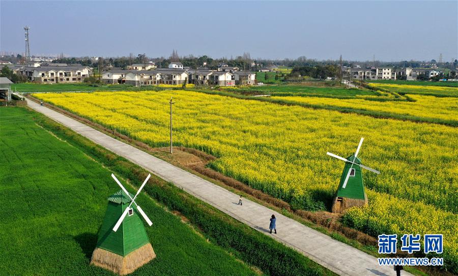 2月25日在四川省崇州市農業(yè)產業(yè)功能區(qū)拍攝的油菜花田(無人機照片)。新華社記者王曦攝