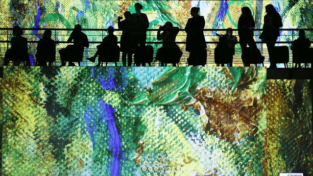 2月27日,在法國巴黎,人們在《從莫奈、雷諾阿到夏加爾:地中海之旅》光影藝術(shù)沉浸展的媒體預(yù)展上參觀?!稄哪?、雷諾阿到夏加爾:地中海之旅》光影藝術(shù)沉浸展將于2020年2月28日至2021年1月3日在法國巴黎舉行。展覽利用數(shù)碼投影技術(shù)為觀眾展示包括莫奈、雷諾阿、夏加爾等在內(nèi)的20位藝術(shù)大師關(guān)于地中海題材的代表作,讓觀眾沉浸在從印象派到現(xiàn)代主義畫作的視聽享受中。新華社記者高靜攝