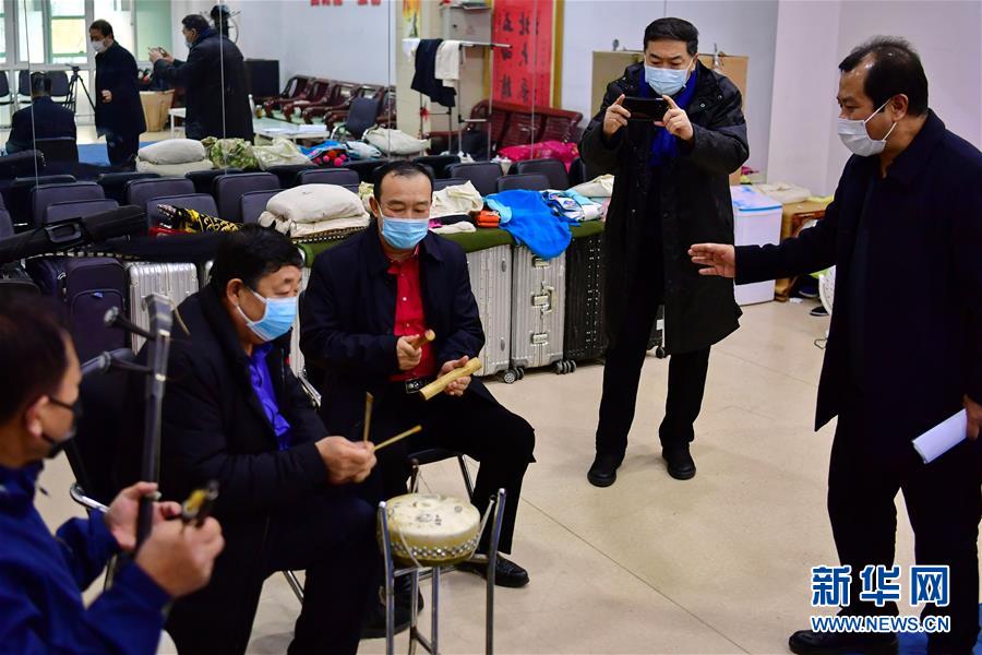太原市晉劇藝術(shù)研究院的工作人員在為戲迷直播武凌云(左二)排練晉?。?月9日攝)。 新華社記者 曹陽 攝