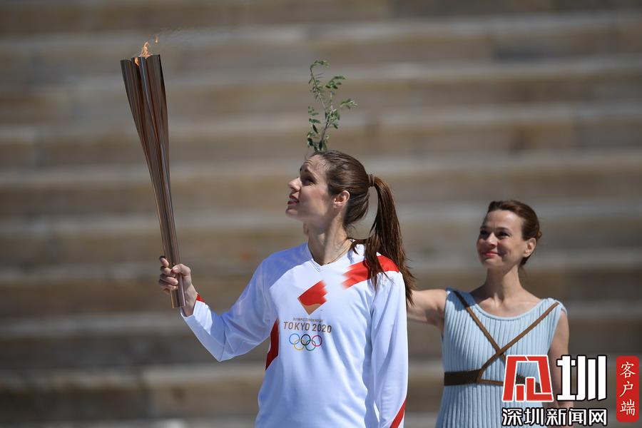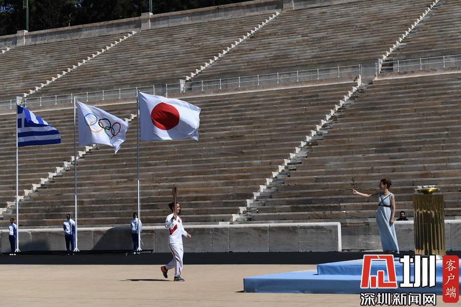 2020年3月18日,2020年東京奧運(yùn)會(huì)火炬交接儀式在希臘雅典帕納辛奈科體育場舉行。
