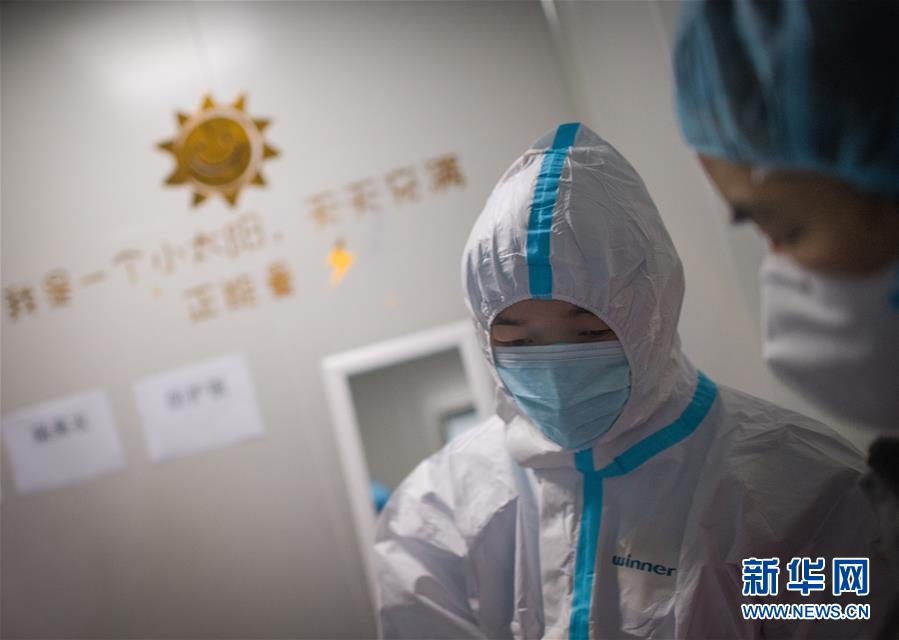 3月19日,在武漢市肺科醫(yī)院清潔區(qū),浙江醫(yī)療隊(duì)隊(duì)員在穿戴防護(hù)服。 新華社記者 肖藝九 攝