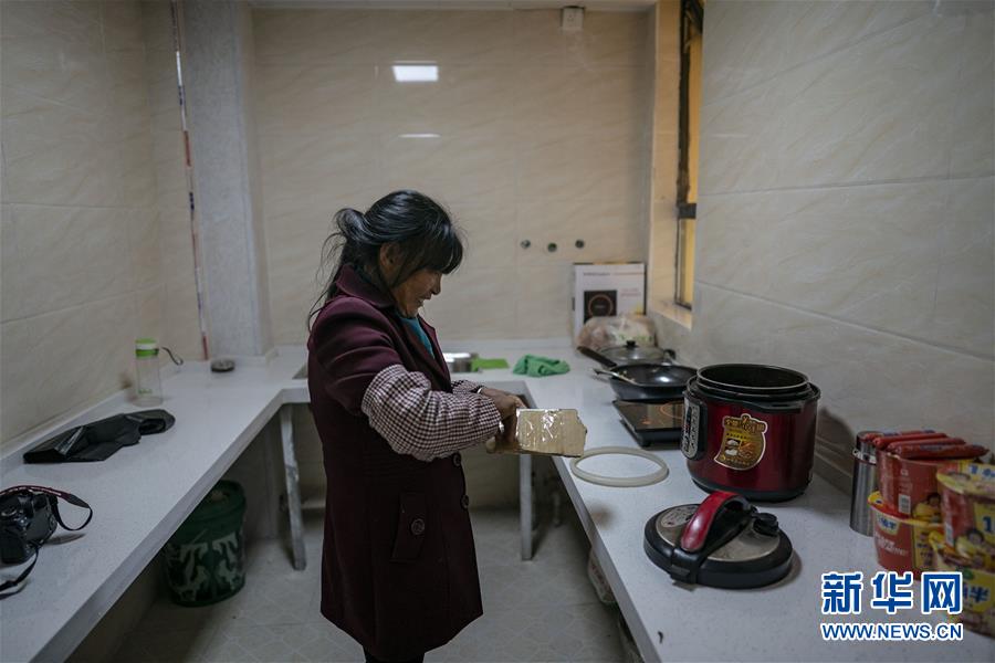王大香在新家準備做飯(3月15日攝)。 新華社記者 江文耀 攝