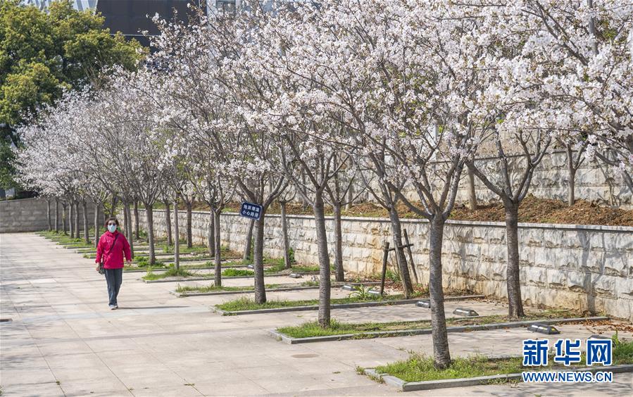 3月19日,在武漢市武昌區(qū)被網(wǎng)友稱為“武漢最美停車場(chǎng)”的湖北日?qǐng)?bào)停車場(chǎng),一名工作人員從櫻花樹(shù)邊經(jīng)過(guò)。 新華社記者 才揚(yáng) 攝