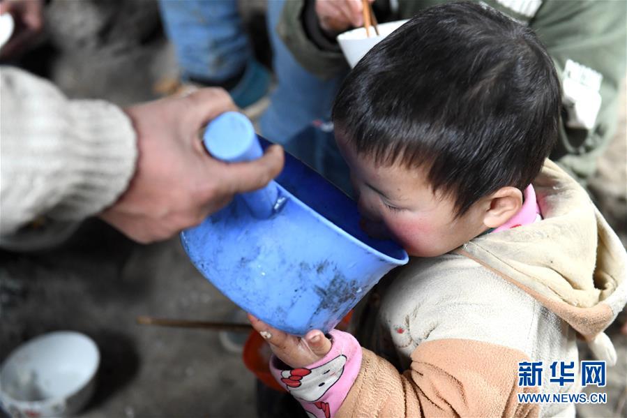 廣西南丹縣里湖瑤族鄉(xiāng),村民給孩子喂水(2018年1月12日攝)。廣西有近一半貧困人口生活在石漠化地區(qū),涉及數(shù)十個縣區(qū)。這里也是廣西飲水保障程度最低的地區(qū),解決貧困人口飲水問題是廣西脫貧攻堅戰(zhàn)“硬仗中的硬仗”。“十三五”以來,廣西加快實施農(nóng)村飲水安全鞏固提升工程。因地制宜,采取新建、擴建及管網(wǎng)延伸等多種措施,補齊貧困地區(qū)水利薄弱短板,進一步提升石漠化地區(qū)群眾飲水安全保障水平,助推脫貧攻堅。新華社記者周華攝