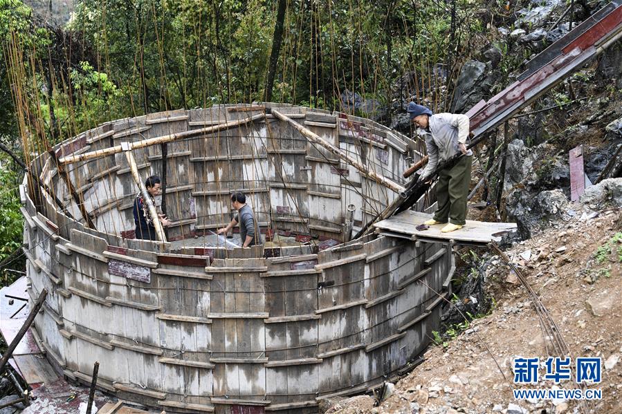 廣西都安瑤族自治縣隆福鄉(xiāng)的村民在修建家庭水柜(3月17日攝)。廣西有近一半貧困人口生活在石漠化地區(qū),涉及數(shù)十個(gè)縣區(qū)。這里也是廣西飲水保障程度最低的地區(qū),解決貧困人口飲水問題是廣西脫貧攻堅(jiān)戰(zhàn)“硬仗中的硬仗”?!笆濉币詠?,廣西加快實(shí)施農(nóng)村飲水安全鞏固提升工程。因地制宜,采取新建、擴(kuò)建及管網(wǎng)延伸等多種措施,補(bǔ)齊貧困地區(qū)水利薄弱短板,進(jìn)一步提升石漠化地區(qū)群眾飲水安全保障水平,助推脫貧攻堅(jiān)。新華社記者曹祎銘攝