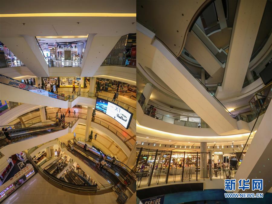 這是3月21日拍攝的泰國曼谷暹羅百麗宮商場(左圖)和3月22日拍攝的停止?fàn)I業(yè)的商場的對(duì)比圖。新華社記者張可任攝