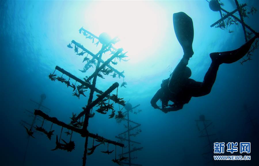 3月28日,在位于海南三亞蜈支洲島旅游區(qū)的海洋牧場(chǎng),工作人員在進(jìn)行巡護(hù)。近日,位于海南三亞蜈支洲島旅游區(qū)的海洋牧場(chǎng)復(fù)工,海底作業(yè)逐漸恢復(fù)正常,開始進(jìn)行人工魚礁吊裝擺位、水下監(jiān)控清理以及日常巡護(hù)等工作。據(jù)介紹,人工魚礁有利于魚類種類增加和數(shù)量提高,蜈支洲島海域海洋牧場(chǎng)人工魚礁表面附著珊瑚、貝類、藻類等生物種類達(dá)120余種。新華社記者楊冠宇攝