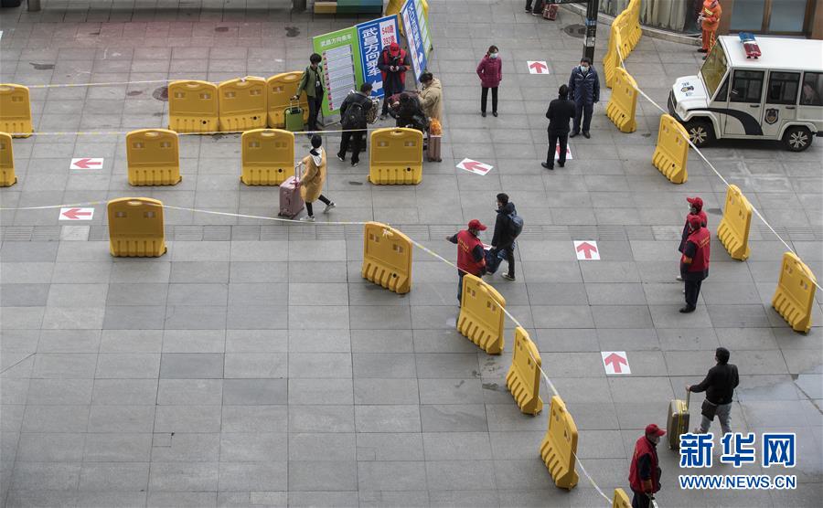 3月28日,工作人員引導出站的旅客按照不同的路線乘坐公交車。新華社記者費茂華攝