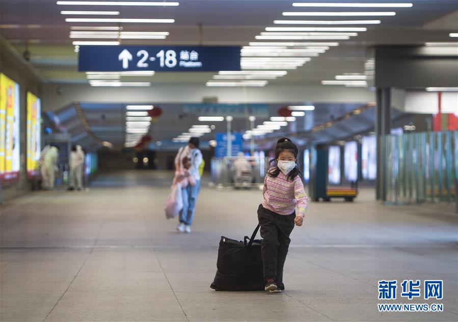 3月28日,在漢口火車站,一名小朋友幫家長提行李出站。當日零時起,武漢市恢復辦理鐵路客站到達業(yè)務。為做好抵漢旅客組織工作,武漢三大火車站安排專人提前與列車對接,核對下車人數(shù),并組織工作人員和鐵路志愿者提前在站臺等候接車,做好組織引導。列車到達后,車站配合防疫部門做好旅客出站測溫、登記信息等工作,并和公交集團、地鐵公司聯(lián)動,引導旅客按照去向有序換乘。新華社記者肖藝九攝