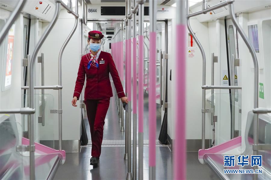 3月28日,武漢地鐵運營有限公司司機(jī)吳亞在常青車輛段巡視車輛內(nèi)部情況。新華社記者沈伯韓攝