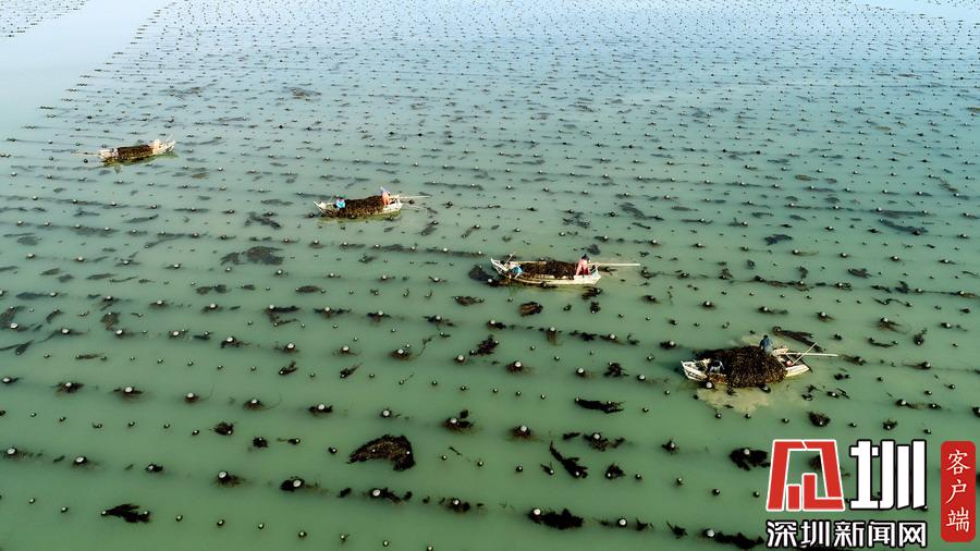 場(chǎng)面壯觀!山東威海收割海帶