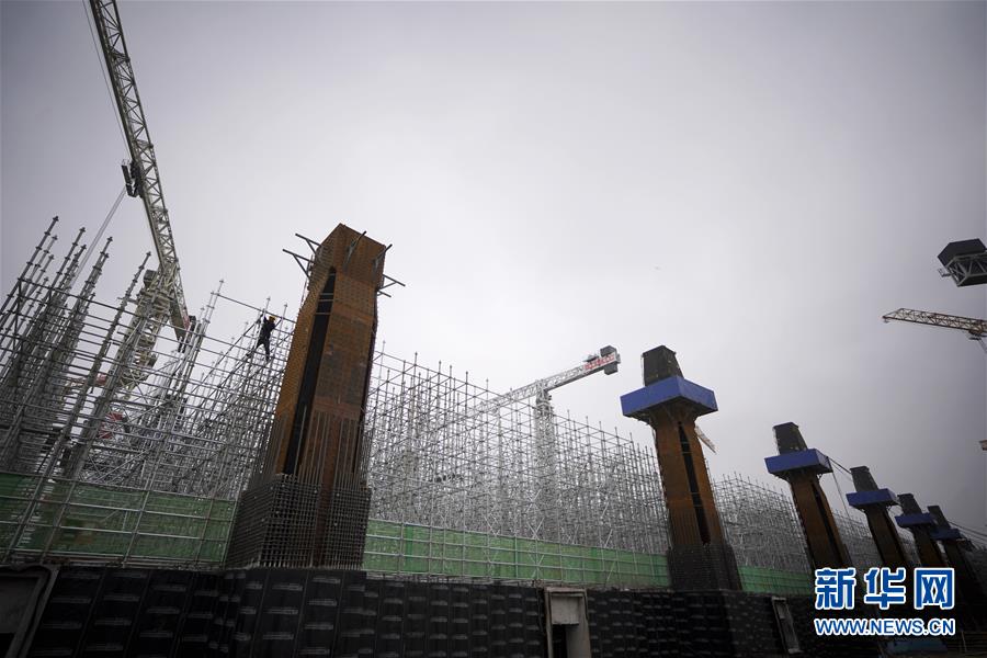 10月10日,工人在雄安站施工。新華社記者邢廣利攝