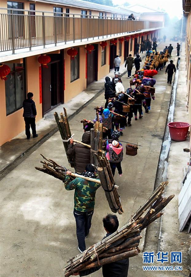 廣西融水苗族自治縣四榮鄉(xiāng)榮地村的侗族村民在喬遷新居(2018年1月26日攝)。新華社記者張愛林?jǐn)z