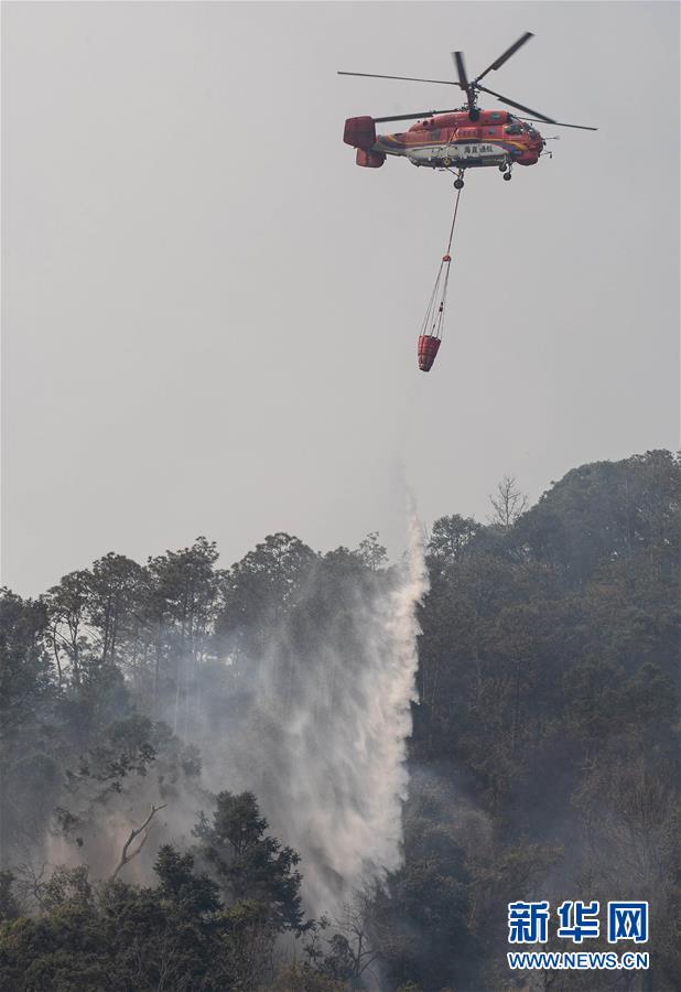 4月1日,一架卡-32大型直升機在西昌森林火災現(xiàn)場撲火。新華社記者江宏景攝
