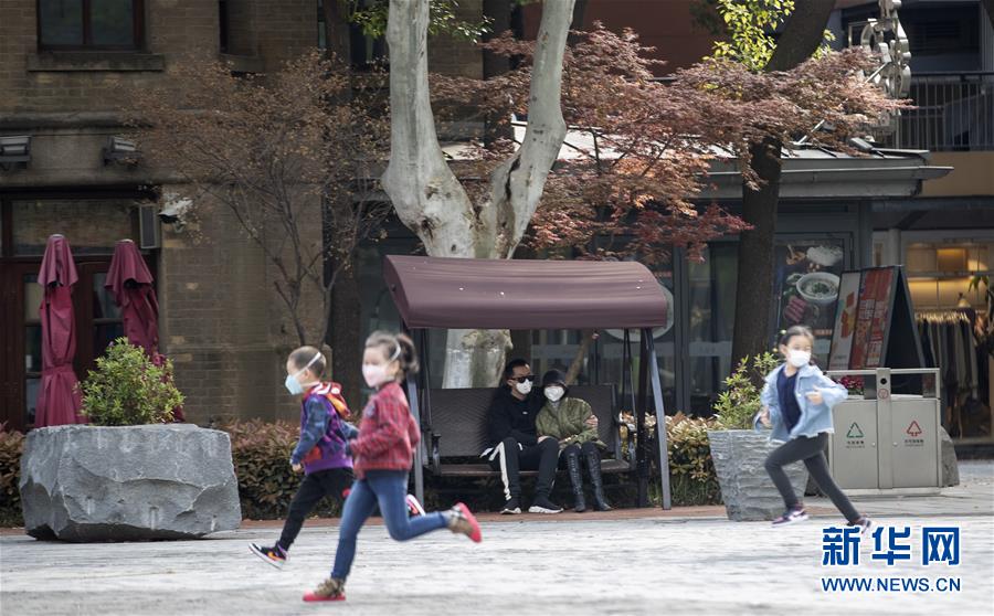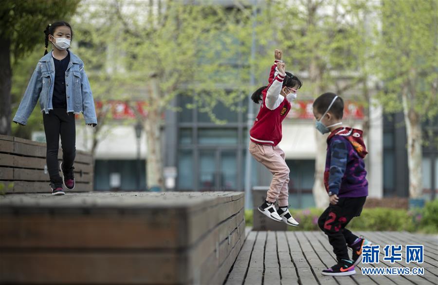 4月1日,在武漢天地廣場,幾個(gè)小朋友在玩耍。新華社記者費(fèi)茂華攝