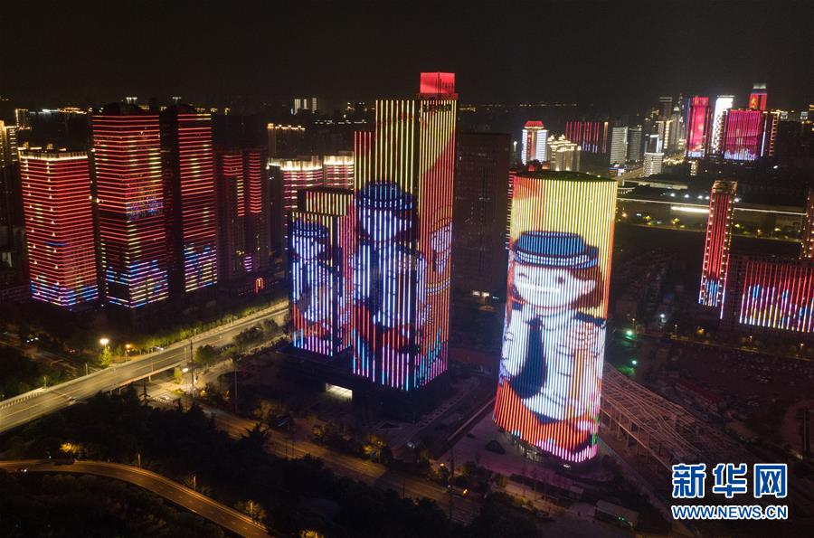 4月8日零時起,武漢市正式解除離漢離鄂通道管控措施,全市景觀照明開啟(無人機(jī)拍攝)。新華社記者程敏攝