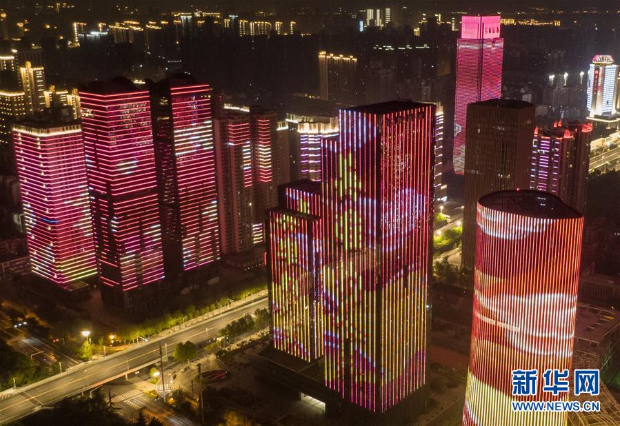 4月8日零時(shí)起,武漢市正式解除離漢離鄂通道管控措施,全市景觀照明開啟(無(wú)人機(jī)拍攝)。新華社記者程敏攝