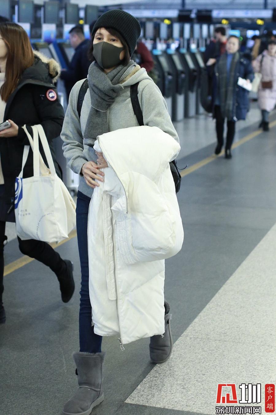 2019年1月5日,北京,袁泉現(xiàn)身機場。