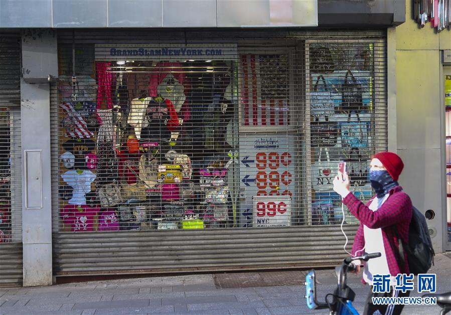 3月21日,在美國(guó)紐約時(shí)報(bào)廣場(chǎng),一家紀(jì)念品商店關(guān)閉。新華社記者王迎攝
