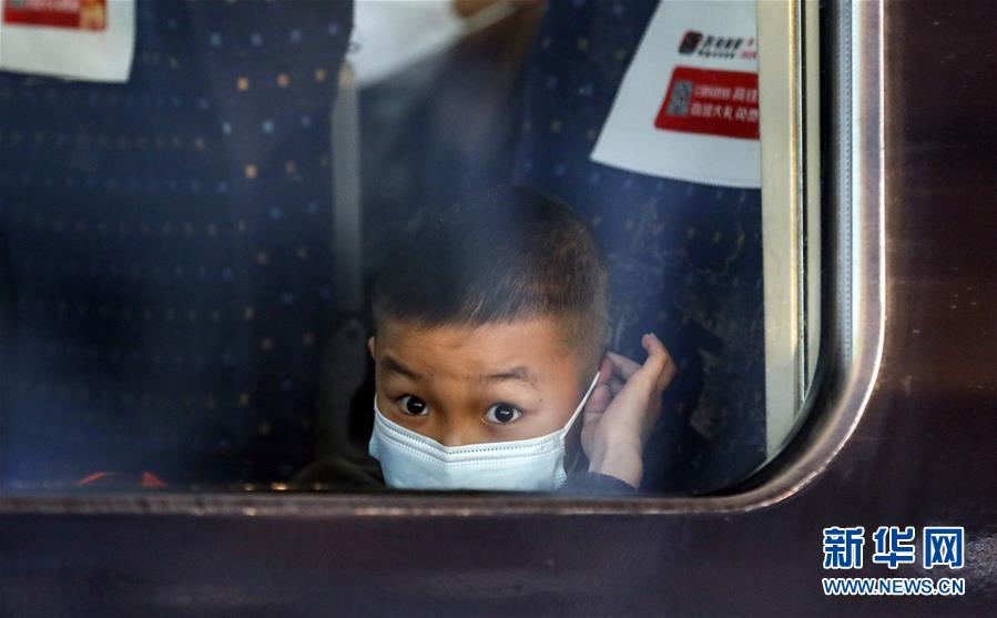 4月8日,在武漢站,一名小乘客從G431次列車(chē)上向窗外張望。新華社記者沈伯韓攝