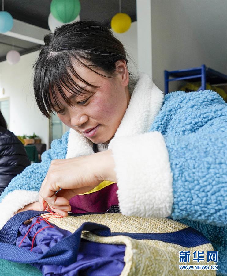 4月8日,在重慶石柱中益鄉(xiāng)巾幗扶貧工坊,當?shù)貗D女在縫制土家族風情手提袋。近年來,重慶市石柱土家族自治縣中益鄉(xiāng)在重慶市婦聯(lián)的幫助下,以當?shù)胤沁z傳統(tǒng)技藝作為結(jié)合點,把扶貧與扶志、扶智相結(jié)合,通過引進外來文創(chuàng)企業(yè)對留守婦女、貧困及殘疾人群進行刺繡培訓,設(shè)立巾幗扶貧工坊等多種形式,幫助當?shù)卮迕駥崿F(xiàn)就業(yè)增收。據(jù)介紹,巾幗扶貧工坊運行以來,為當?shù)仃懤m(xù)開發(fā)出土家族布老虎、手提袋、餐墊繡邊、創(chuàng)意相框等一系列文創(chuàng)產(chǎn)品,幫助參加巾幗扶貧工坊的留守婦女和貧困村民實現(xiàn)月均增收近千元。新華社記者劉潺攝