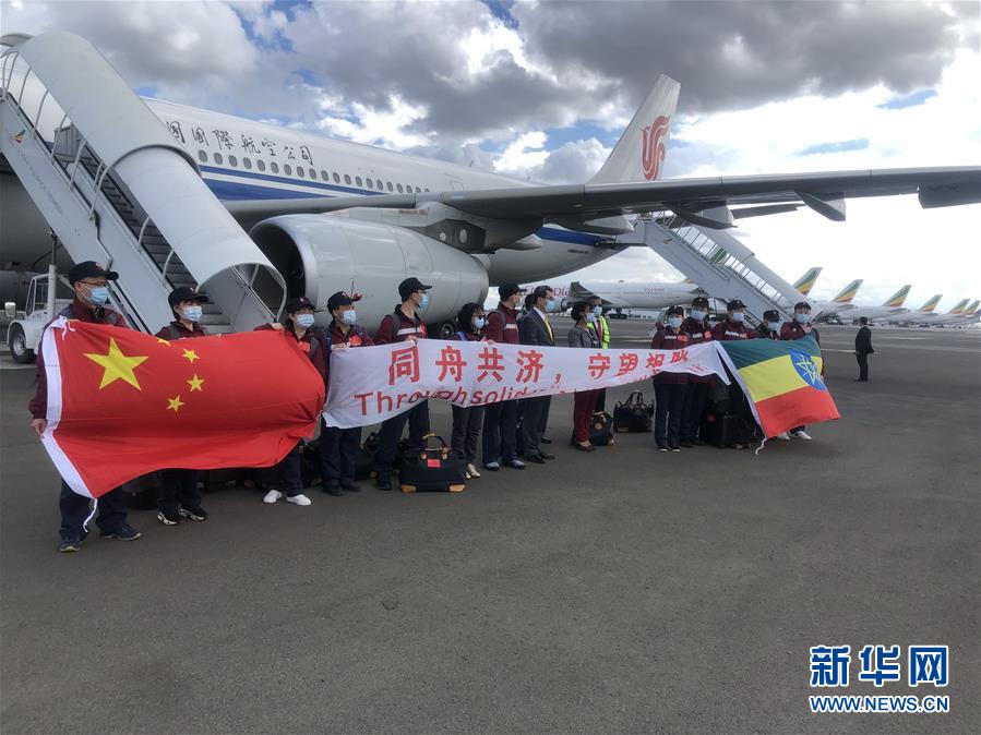 4月16日,中國(guó)援埃塞俄比亞抗疫醫(yī)療專(zhuān)家組抵達(dá)亞的斯亞貝巴國(guó)際機(jī)場(chǎng)。應(yīng)埃塞俄比亞政府邀請(qǐng),中國(guó)政府派遣的抗疫醫(yī)療專(zhuān)家組16日下午抵達(dá)埃塞俄比亞,將與當(dāng)?shù)蒯t(yī)療機(jī)構(gòu)合作開(kāi)展新冠疫情的防疫工作。新華社記者王守寶攝